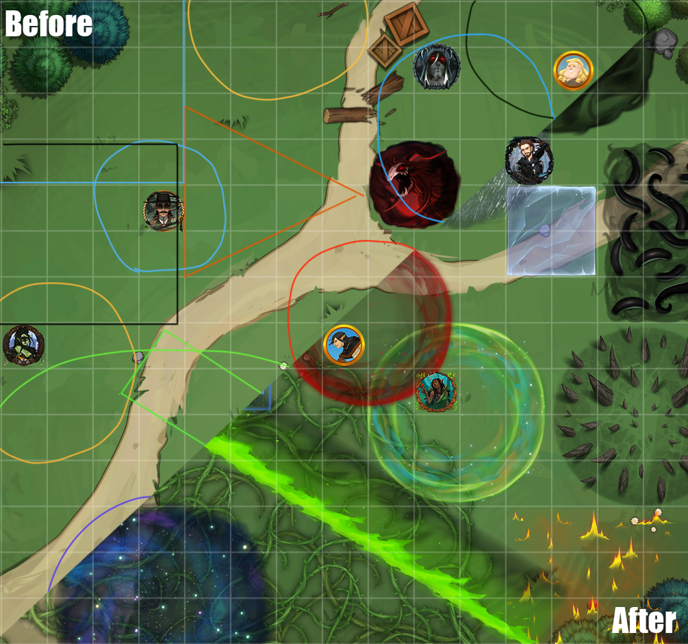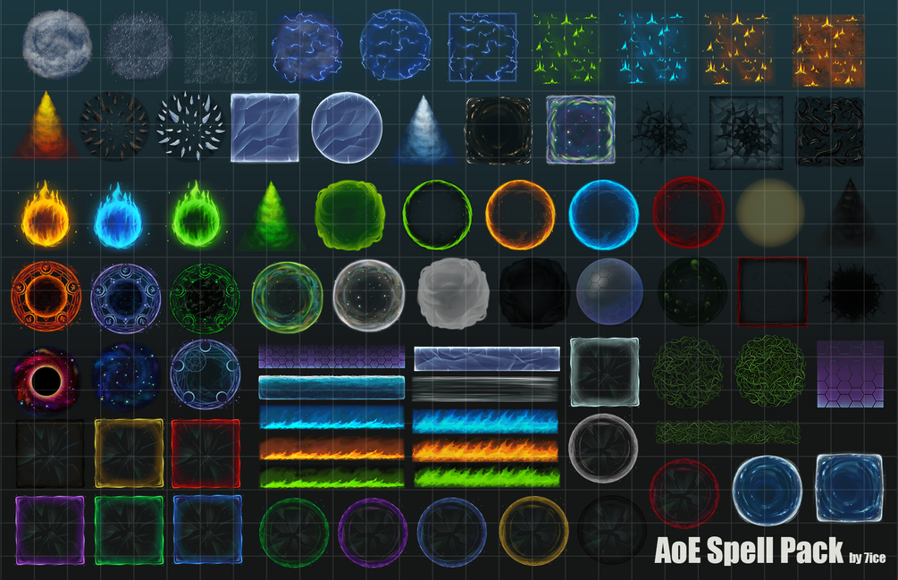 Having trouble drawing a perfect circle? Seeing the full range of a cone-shaped attack? This pack is dedicated to spells that are intended to stay on the map for as long as your caster can hold it for. There's perfect circles, squares, walls, and cone-shaped effects to help you and your players finally see the size of the spell and freely adjust or move them around if necessary.